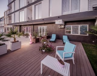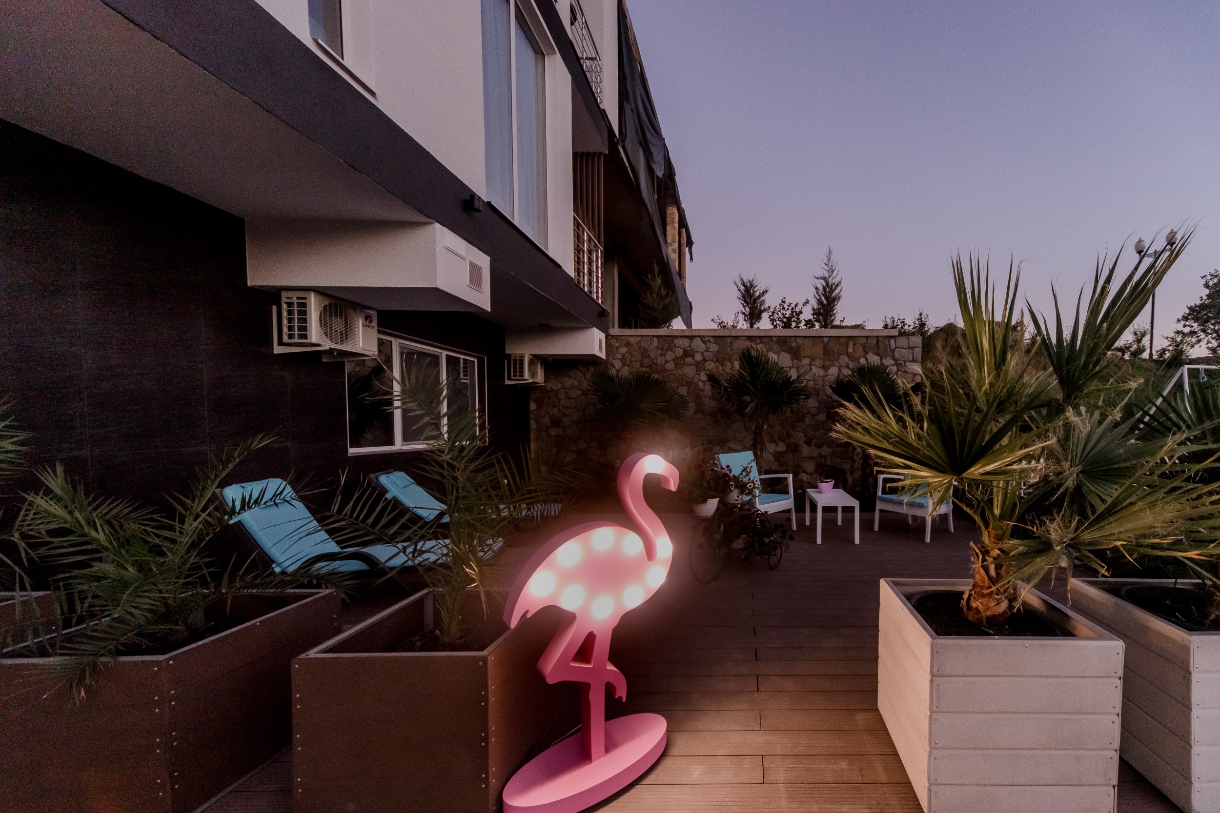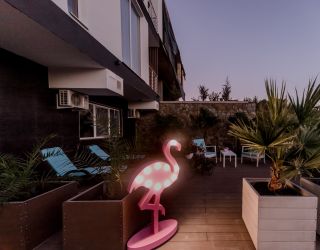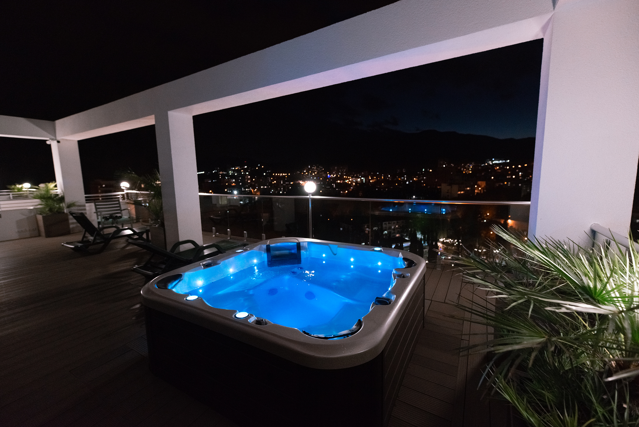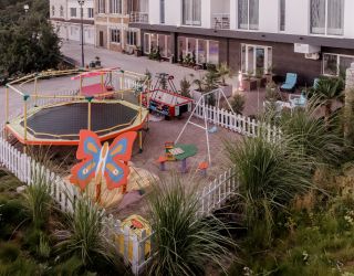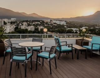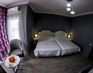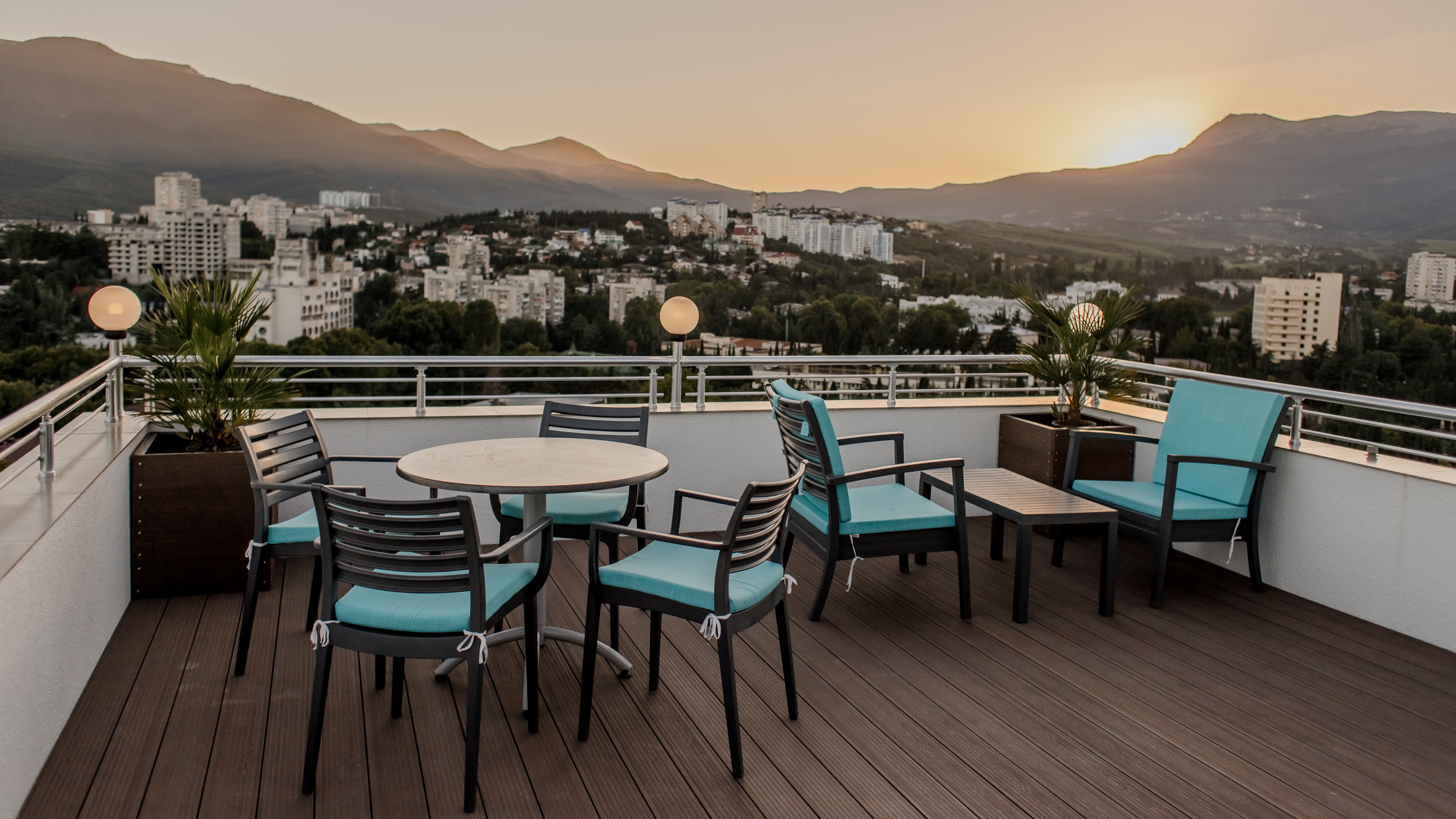 Семиэтажное здание отеля, оснащенное лифтом, возвышается на благоустроенной территории с современным стильным дизайном. Жилой фонд предлагает отдыхающим однокомнатные номера Стандарт и Полулюкс и двухкомнатные Люксы. В каждой категории номеров свой оригинальный интерьер в светло цветовой гамме с использованием ярких синих или бирюзовых оттенков. Все комнаты оснащены душем, кондиционером, необходимой бытовой техникой, имеются меблированные балконы с видами на море или горы.