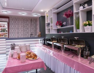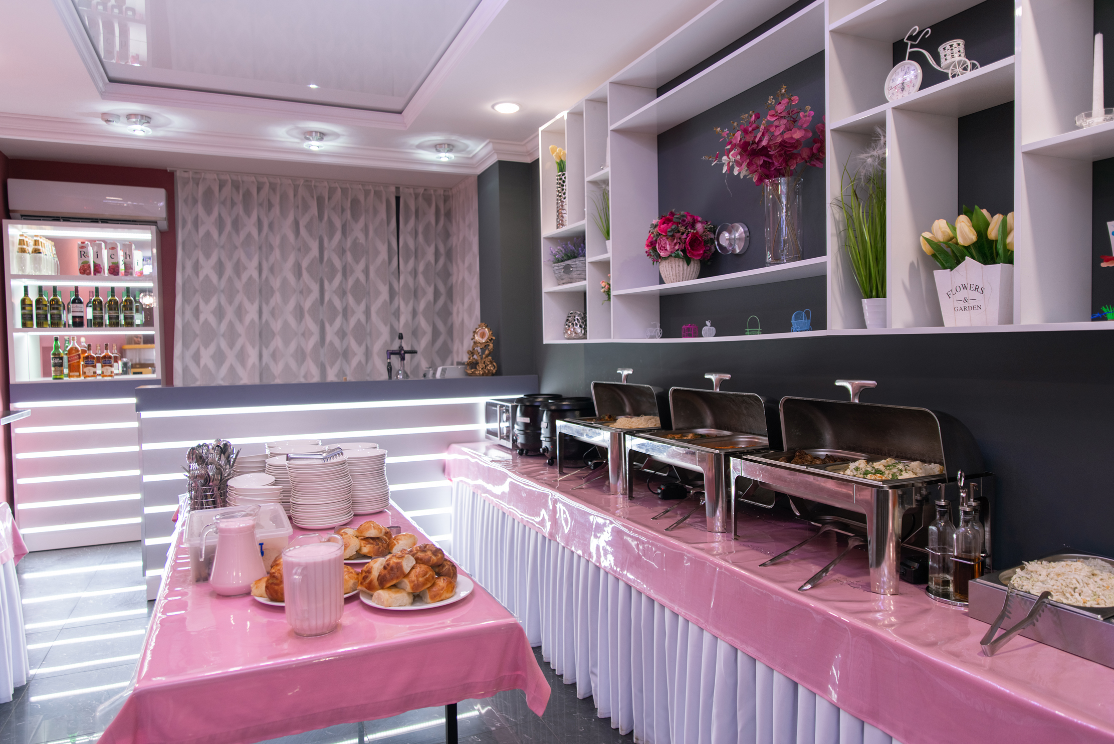 На территории работает ресторан с двумя видовыми залами, где предоставляется питание по системе шведский стол. Во внутреннем дворике есть бассейн с декоративными рыбками .