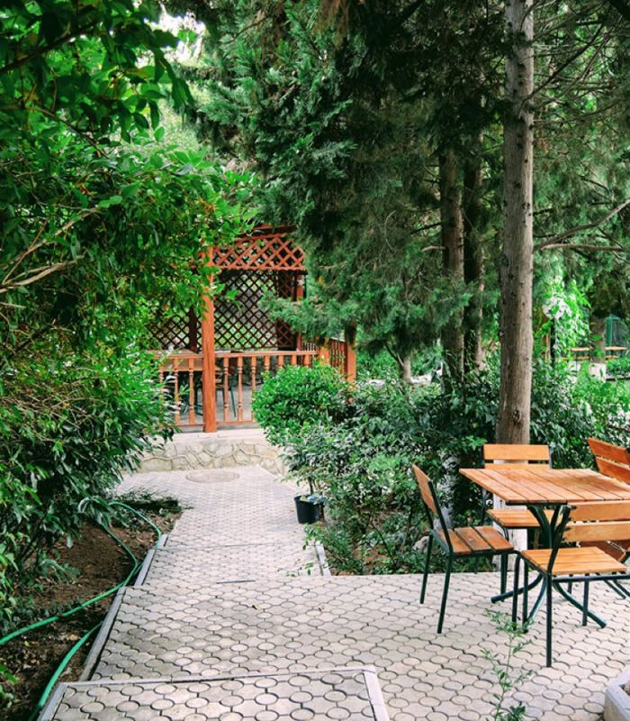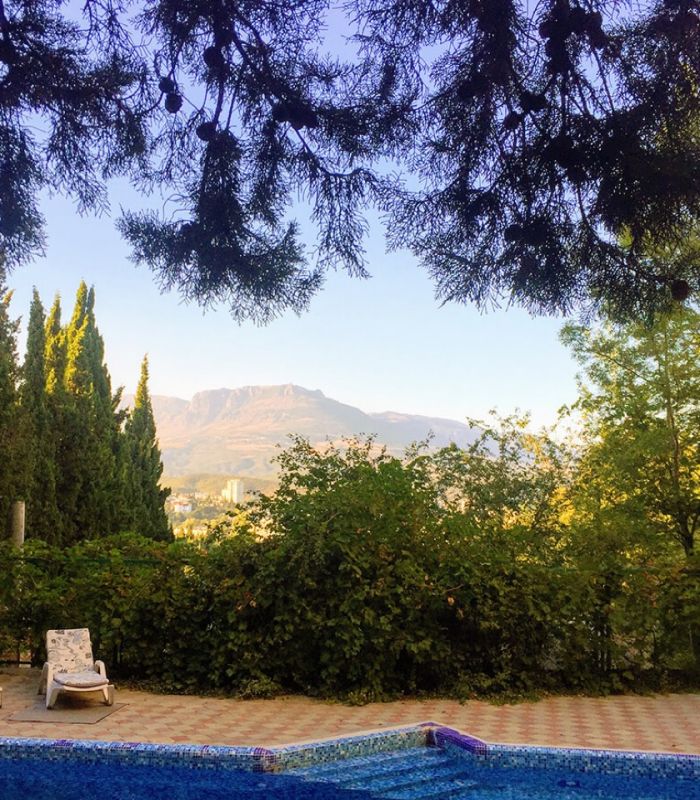 Поездом до ж/д вокзала г. Симферополь, далее на маршрутном такси «Симферополь – Ялта» до остановки «Автовокзал», далее 2,02 км до пансиона.