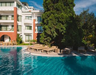 Отель «More SPA & Resort» - современный SPA-отель Южного берега Крыма. Он расположен на первой линии моря в Алуште, в реликтовом парке на 8 гектаров, где собраны 97 видов деревьев и кустарников.