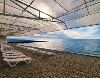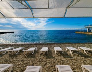 Оборудованный пляж находится напротив Аквапарка, в 300 метрах вдоль набережной от отеля «Морской».