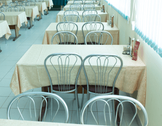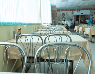 Кондиционированный зал столовой расположен в отдельном здании, соединенным с основным зданием на уровне второго этажа. В столовую можно пройти по второму этажу от центрального входа.