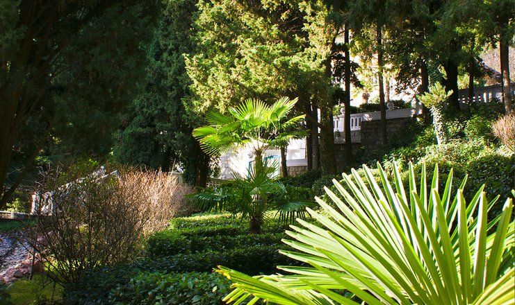 Вилла № 2: 4-этажный корпус, оснащенный лифтом. Гордость виллы – древняя секвойя, под сенью которой раскинулся бассейн глубиной от 1 м до 1,7 м с открытым баром. Вилла располагает 21 номером и одновременно может принять до 42 человек. Удалённость от виллы до пляжа - 100 м.