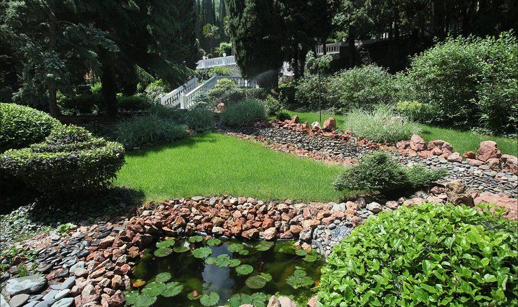 Вилла № 10 (гостевой дом на 6 спальных комнат): расположена в глубине парка, вдали от шума и суеты. Помещения виллы оформлены в классическом стиле, ее просторные апартаменты подойдут истинным ценителям роскоши. В цокольном этаже - мини-SPA-центр (бассейн под меняющим цвет куполом «звездное небо», хамам, римская баня, финская сауна, джакузи). На первом этаже находится гостевая комната с камином и выходом на террасу, банкетный зал, кухня. Расстояние до пляжа - 400 м.