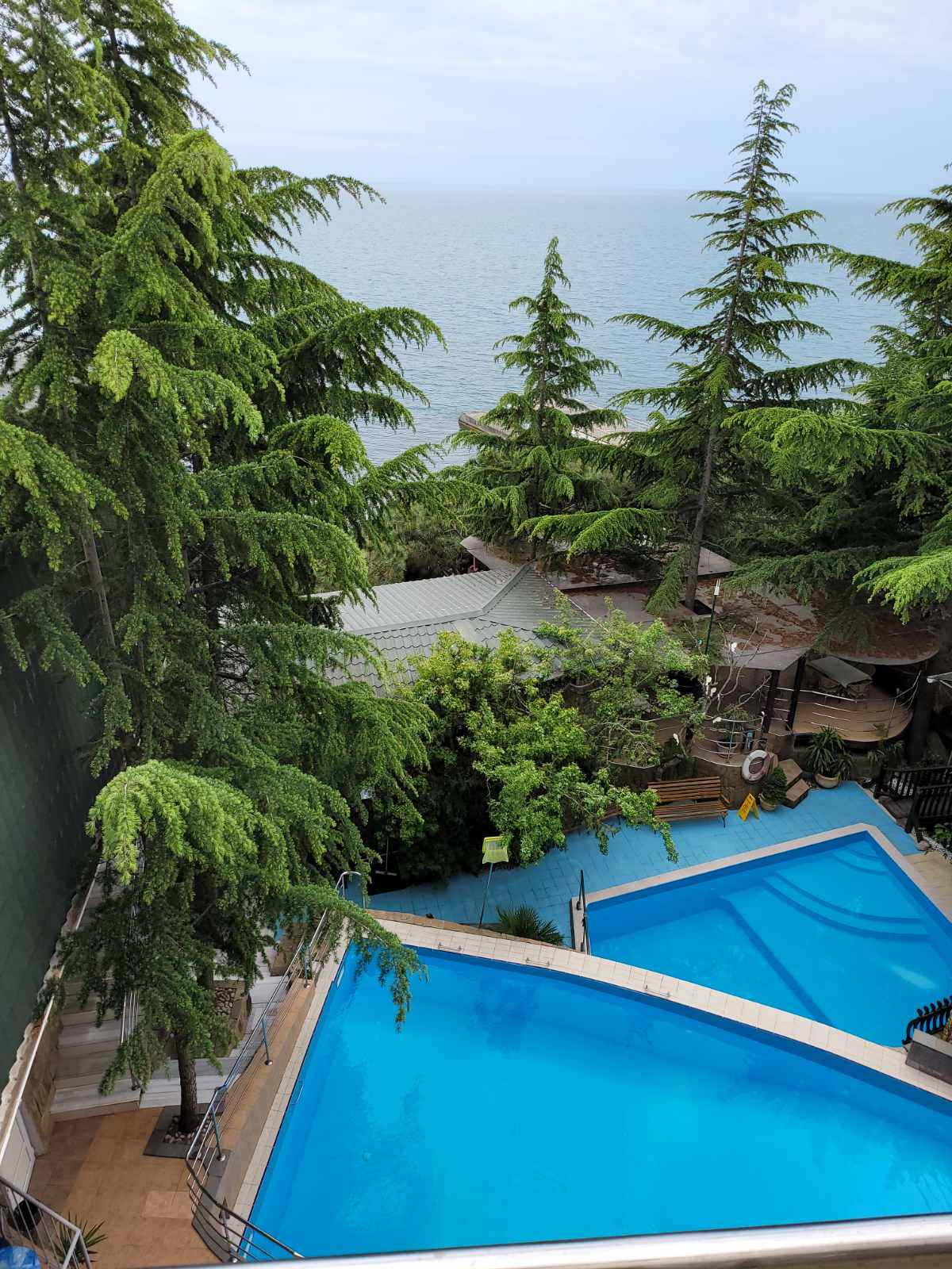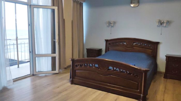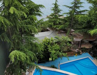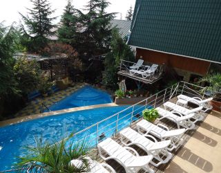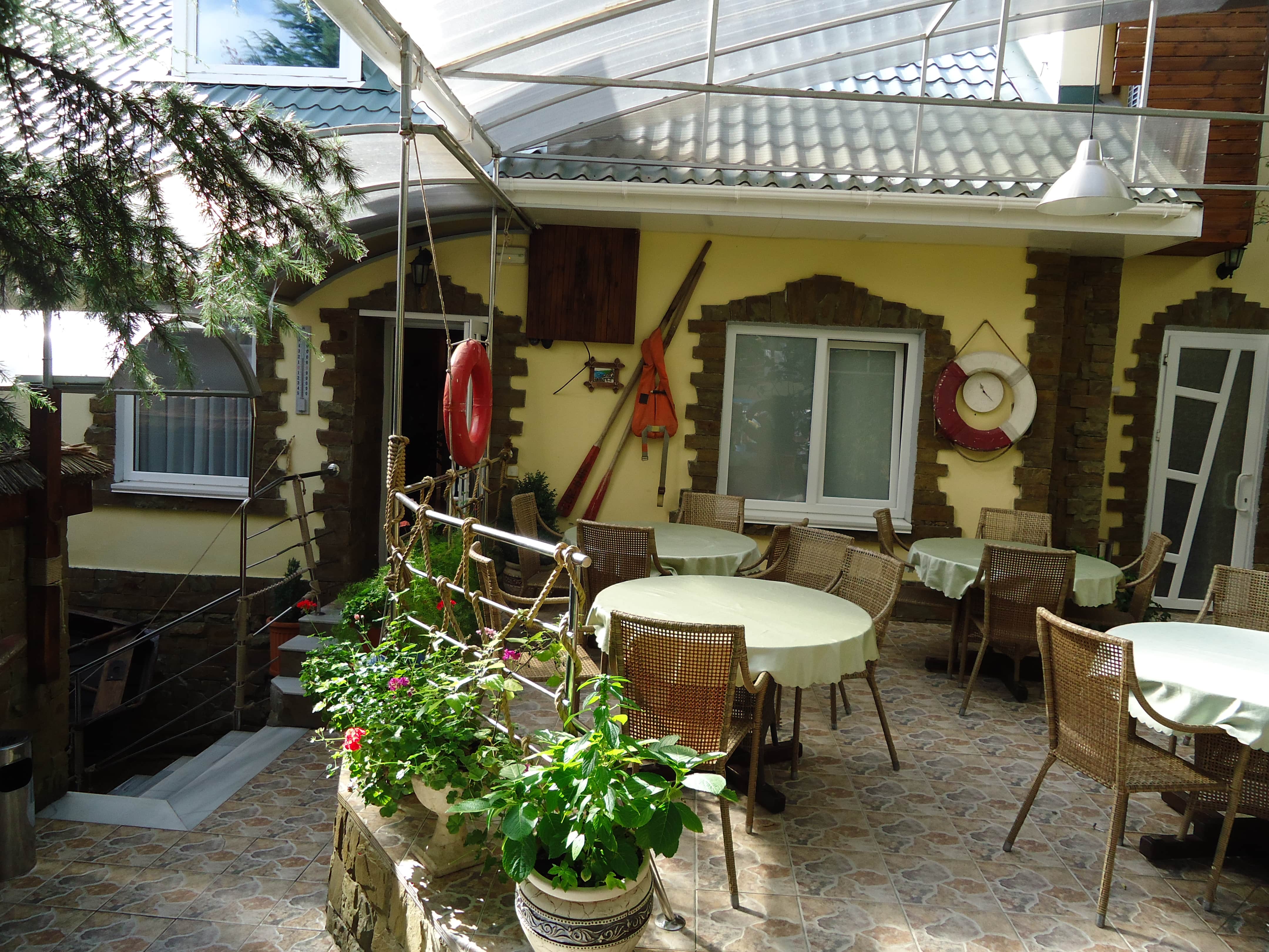 В корпусе 40 комнат для гостей. В каждой имеется кондиционер и телевизор, в большинстве есть окна с панорамным видом на море. На территории гостевого дома работает кафе, в распоряжении отдыхающих два открытых бассейна с морской и пресной водой, крытый бассейн с подогревом, хамам и финская сауна, бильярд, беспроводной интернет. Для автовладельцев предусмотрено сразу две парковки — крытая и открытая.