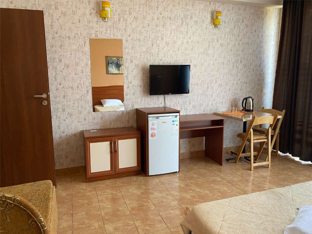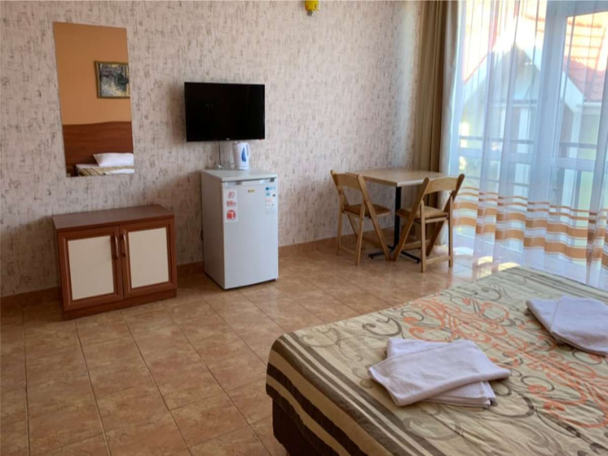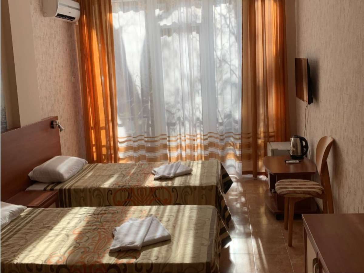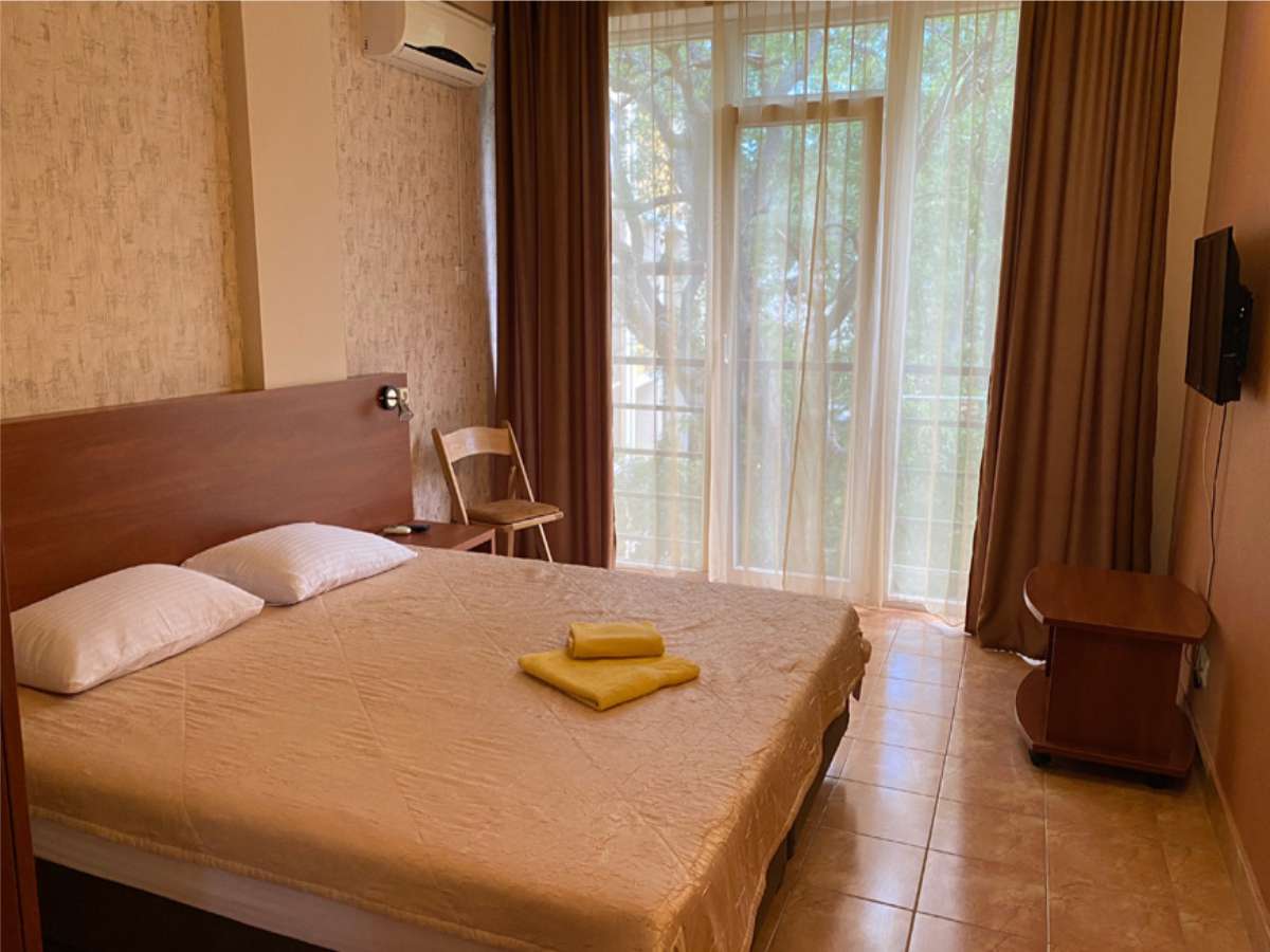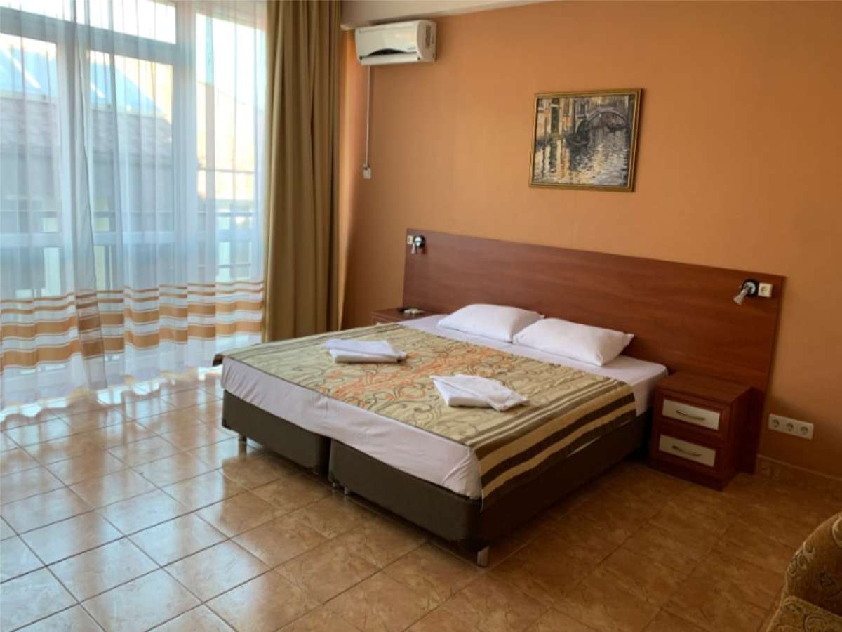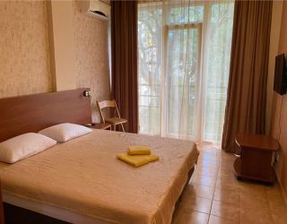 Современный корпус отеля расположен в живописной местности всего в 250 метрах от моря. Жилой фонд, рассчитанный на 55 человек, предлагает отдыхающим комфортабельные номера, в том числе и Апартаменты с кухней. В каждом номере есть кондиционер, электрочайник, телевизор с плоским экраном, чайный набор посуды. В ванных комнатах для гостей подготовлены туалетные принадлежности, в некоторых номерах предусмотрены французские балкончики.
