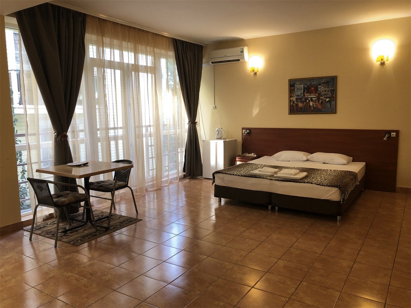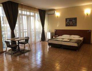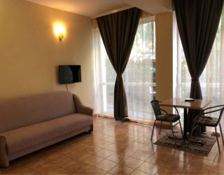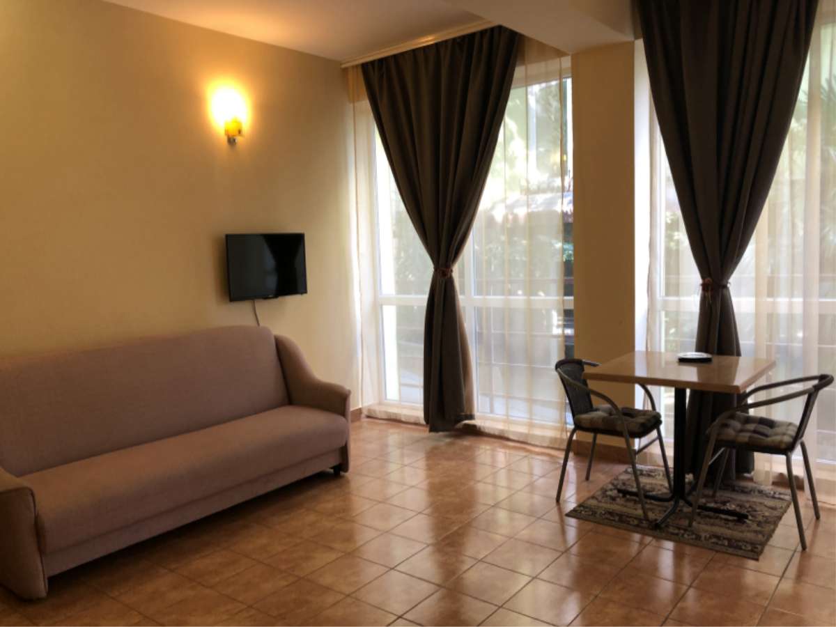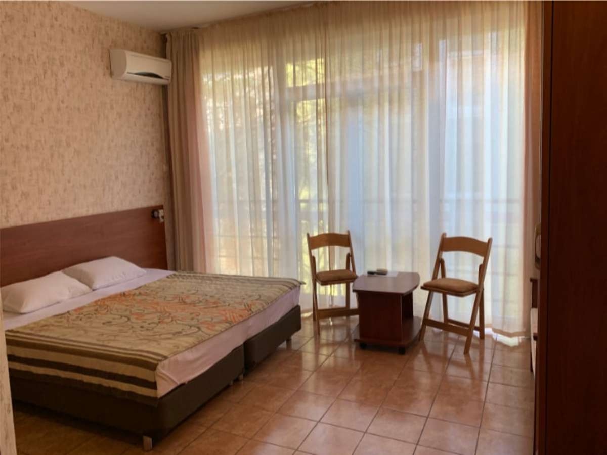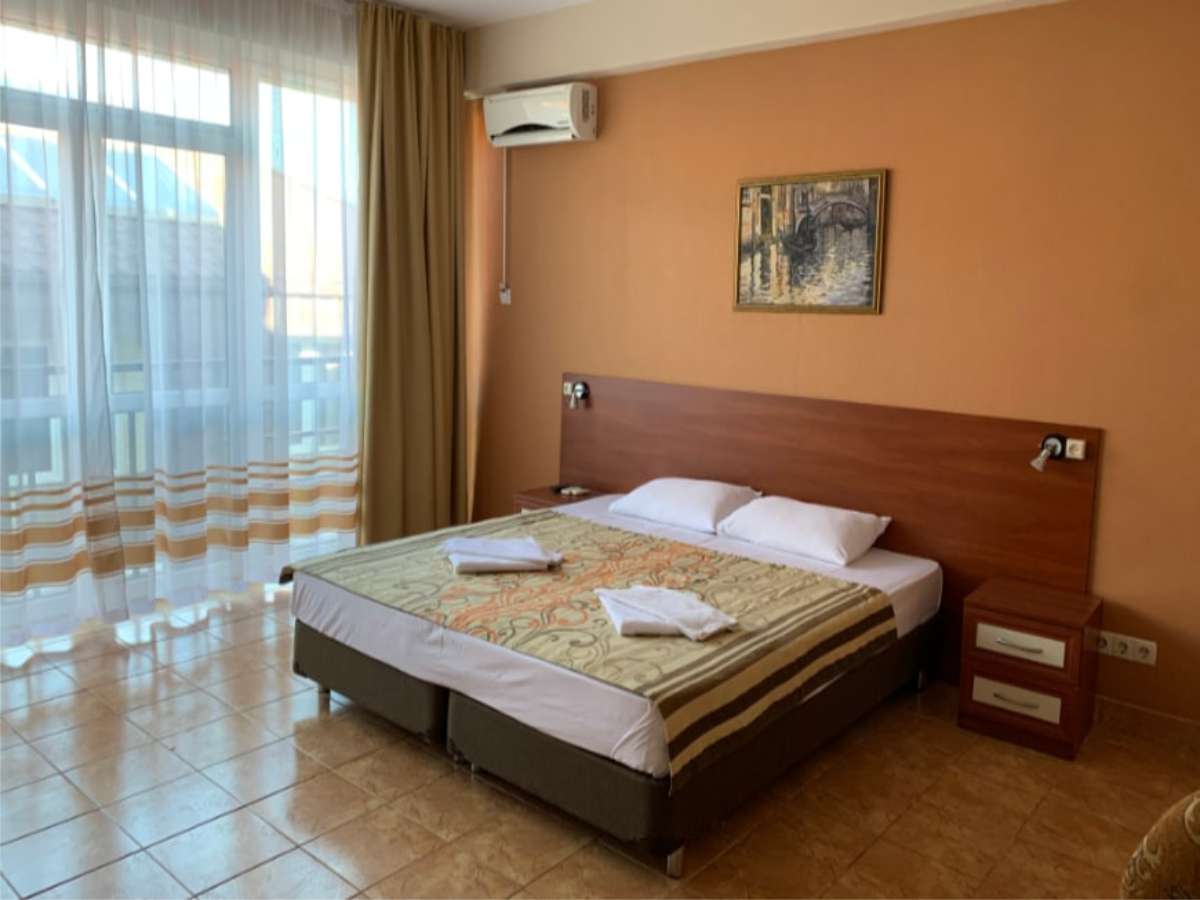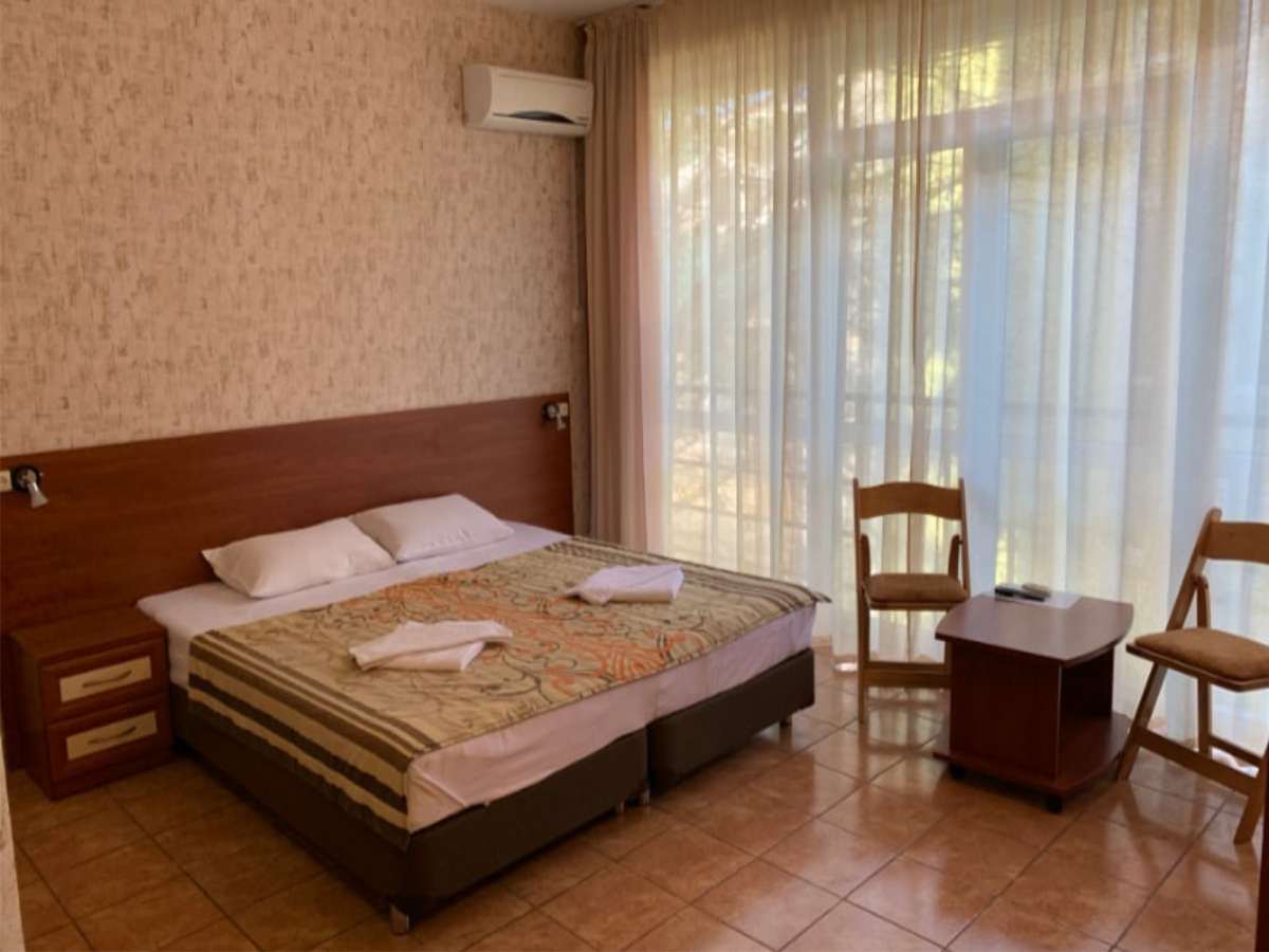 Современный корпус отеля расположен в живописной местности всего в 250 метрах от моря. Жилой фонд, рассчитанный на 55 человек, предлагает отдыхающим комфортабельные номера, в том числе и Апартаменты с кухней. В каждом номере есть кондиционер, электрочайник, телевизор с плоским экраном, чайный набор посуды. В ванных комнатах для гостей подготовлены туалетные принадлежности, в некоторых номерах предусмотрены французские балкончики.