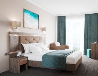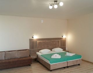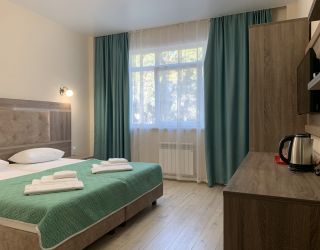 Все номера корпусов светлые, просторные, оборудованы современной техникой, собственным санузлом с ванной или душем, двумя удобными раздельными кроватями, которые при необходимости возможно совместить или 2-спальными кроватями.