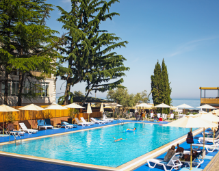 Отель «Русалма» находится в Алуште в самом центре Профессорского уголка, в десяти метрах от пляжа. В шаговой доступности расположены аквапарк, кафе, бары, магазины, остановки общественного транспорта. Дорога до Ялты займет сорок минут, до аэропорта Симферополя – чуть больше часа.