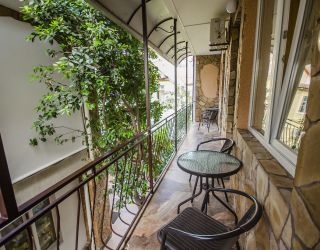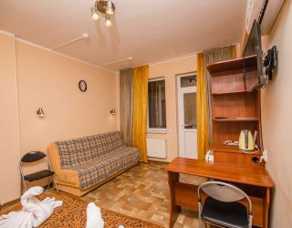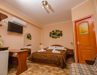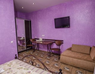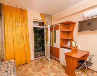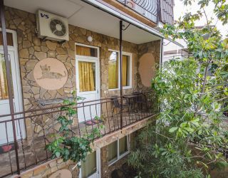 Трехэтажный корпус без лифта разместился в небольшом зеленом дворике. Способный единовременно принять до 30 человек, гостевой дом предлагает отдыхающим двухместные номера Стандарт и Улучшенный. Номера хорошо меблированы, есть балконы, необходимая бытовая техника и собственный санузел с ванной или душем.
