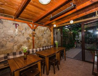 В гостевом доме предусмотрена общая кухня, где отдыхающие могут самостоятельно приготовить себе еду, во дворике обустроена уютная беседка, на всей территории ловит сеть wi-fi. Гостям доступна аренда дополнительной бытовой техники или пляжных принадлежностей. В 1250 метрах от гостиницы расположен мелко-галечный пляж.