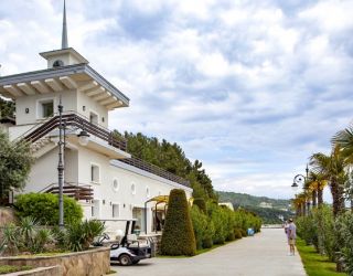 В 80-800 метрах от жилых корпусов находится пляж, оборудованный в европейском стиле – с раздевалками, душевыми и шезлонгами.