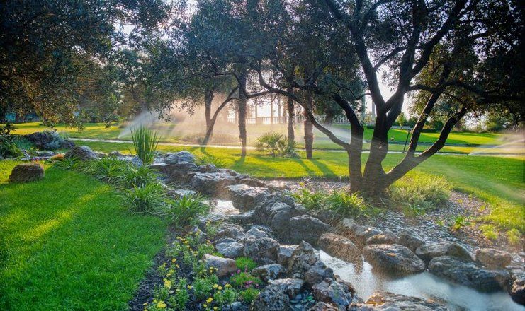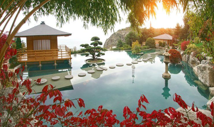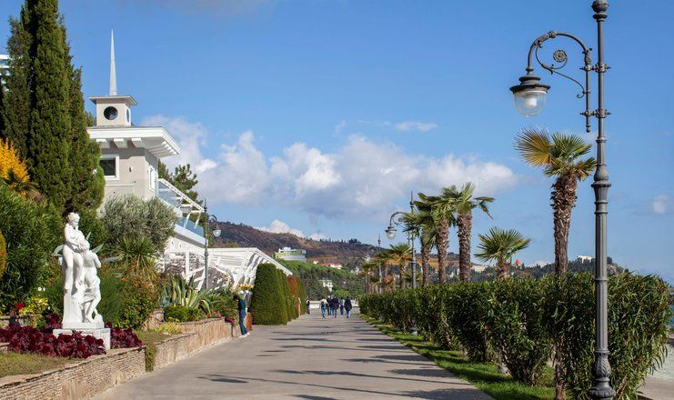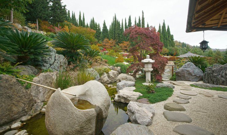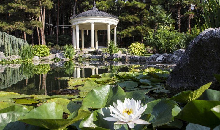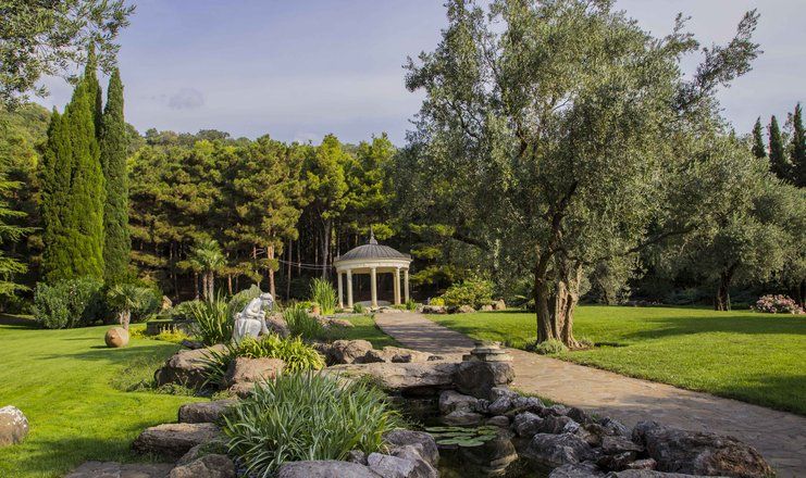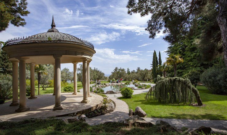 На территории санаторного комплекса площадью в 25 га раскинулся восхитительный парк, признанный памятником садово-ландшафтного дизайна. В нем есть созданный А.А. Аненковым Японский сад (куратор – архитектор Широ Накане), маслиновая роща, живописные аллеи, скульптуры и беседки, фонтаны, водопады и ручьи. Этот парк – знаменитый экскурсионный объект.