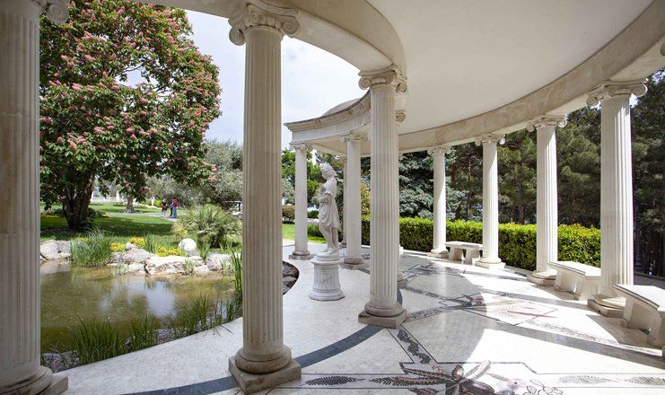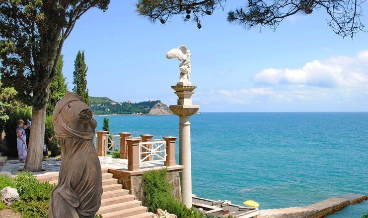 Место просто замечательное! Второго такого атмосферного места, думаю в Крыму больше нет. Побываете и в Греции, и в Италии, и в Японии.... Корпуса европейского уровня. Отдыхала несколько раз не в сезон. Из минусов не в сезон только тип питания - Заказное меню.