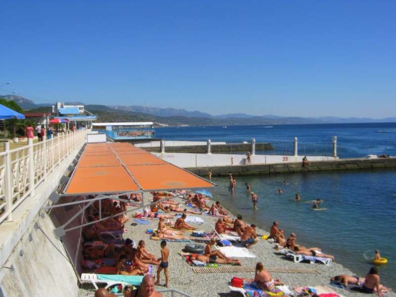 - Характеристики пляжа (800 м; спуск к морю по ступенькам)