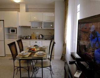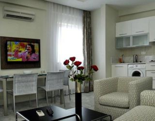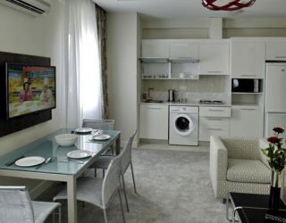 В составе комплекса – два десятиэтажных корпуса с 240 апартаментами, в которых есть Wi-Fi, а также кухня с посудой и бытовой техникой, включая стиральную машину (кроме студий).