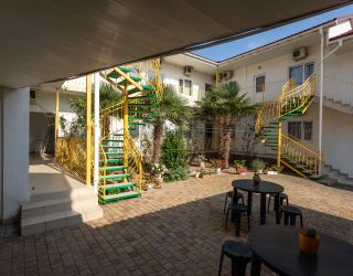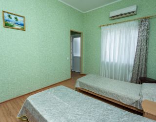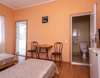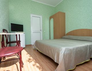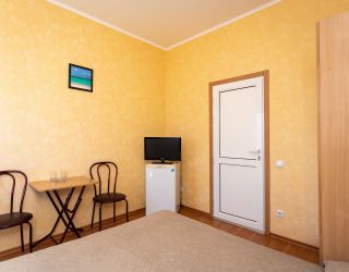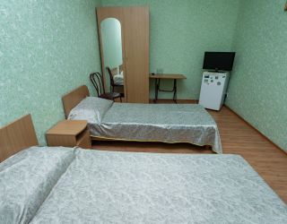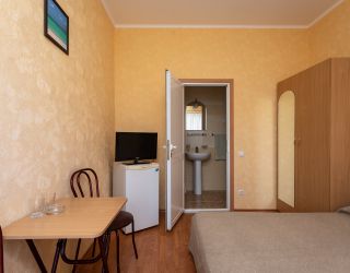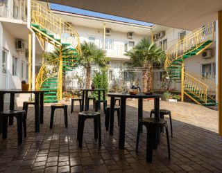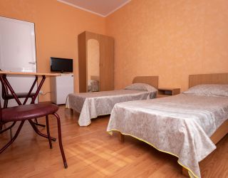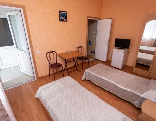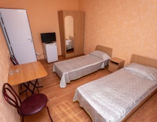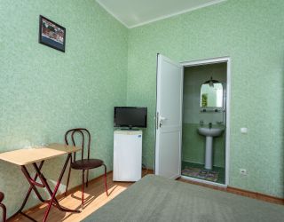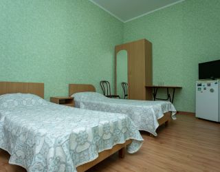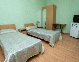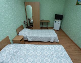Двухэтажный корпус гостиницы занимает небольшую уютную территорию с зеленным внутренним двориком. Отдыхающих ожидают номера Стандарт, оснащенные индивидуальным санузлом, телевизором, холодильником и кондиционером.