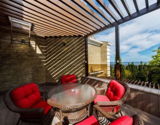 В паре минут ходьбы — галечный пляж. На побережье есть раздевалки, шезлонги, навесы и лежаки.