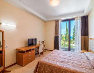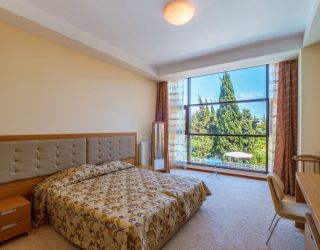 Самолетом до аэропорта г. Симферополь, далее на троллейбусе №20 до остановки «Железнодорожный вокзал», далее на троллейбусе №51 до остановки «Алушта – троллейбусная станция», далее пройти пешком 1,3 км до отеля.