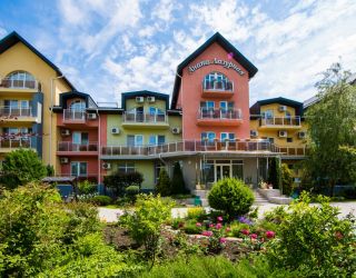 В пансионате работают обеденный зал и лобби-бар, где можно заказать прохладительные напитки и коктейли, на каждом этаже находится кулер с холодной и горячей водой. К услугам отдыхающих открытый бассейн, доступный в теплое время года. Для детей организована игровая комната, где за малышами присматривают воспитатели, есть детская площадка, регулярно детей развлекают веселые аниматоры. Гости, приезжающие на машинах, могут воспользоваться автопарковкой, также на всей территории доступен беспроводной интернет.