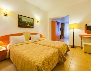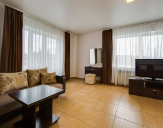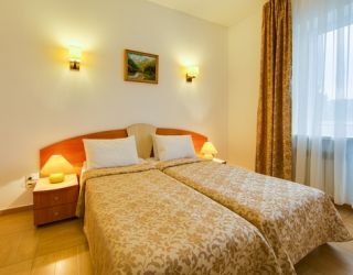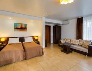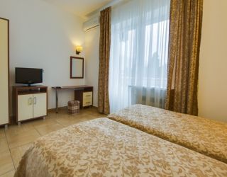 Пансионат разместился на охраняемой территории, оснащенной камерами видеонаблюдения, в центре Пионерского проспекта. В распоряжении гостей однокомнатные и двухкомнатные номера, оформленные в классическом стиле. В каждом номере установлена сплит-система, есть плазменный телевизор, мини-холодильник, набор посуды. В ванной комнатой душ и наборы косметических принадлежностей для гостей.
