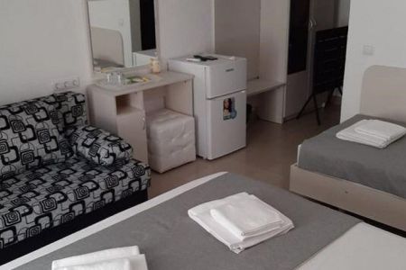 Поездом до ж/д вокзала г. Анапы, далее на маршрутном такси №120 до остановки «Прометей», далее 570 м до гостевого дома.