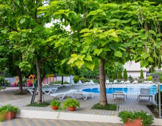 Для детей на территории отеля организованы игровая площадка и детская комната, два раза в неделю работают аниматоры, родители могут взять в аренду прогулочную коляску трость или кроватку-манеж.