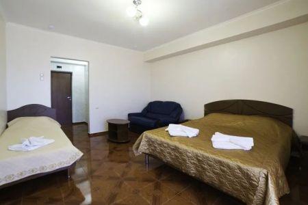 Самолетом до аэропорта г. Анапы, далее на маршрутном такси №113 до остановки «Аквапарк», далее на маршрутном такси №114,128 до остановки «Бульвар Шардоне», далее 53 м до отеля.