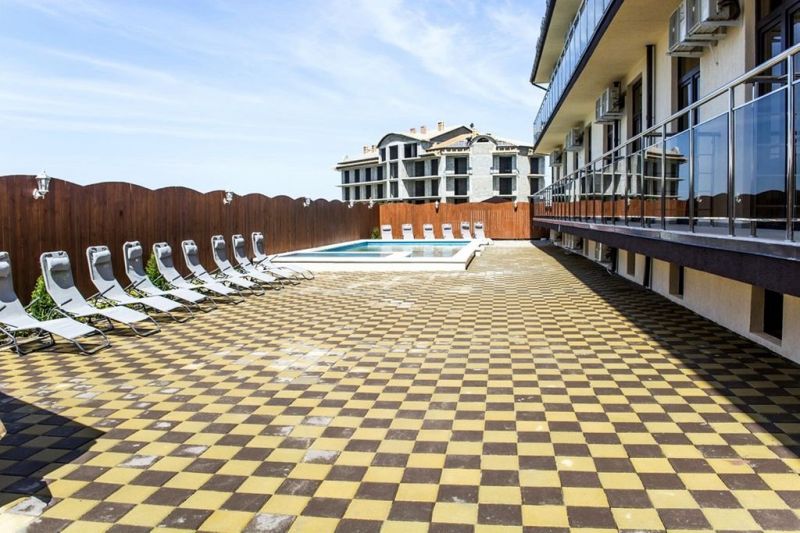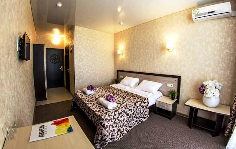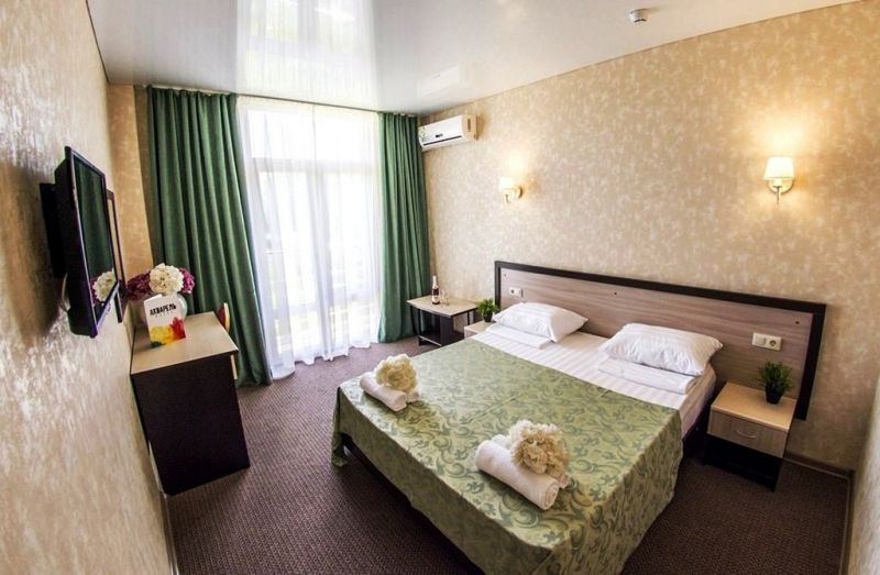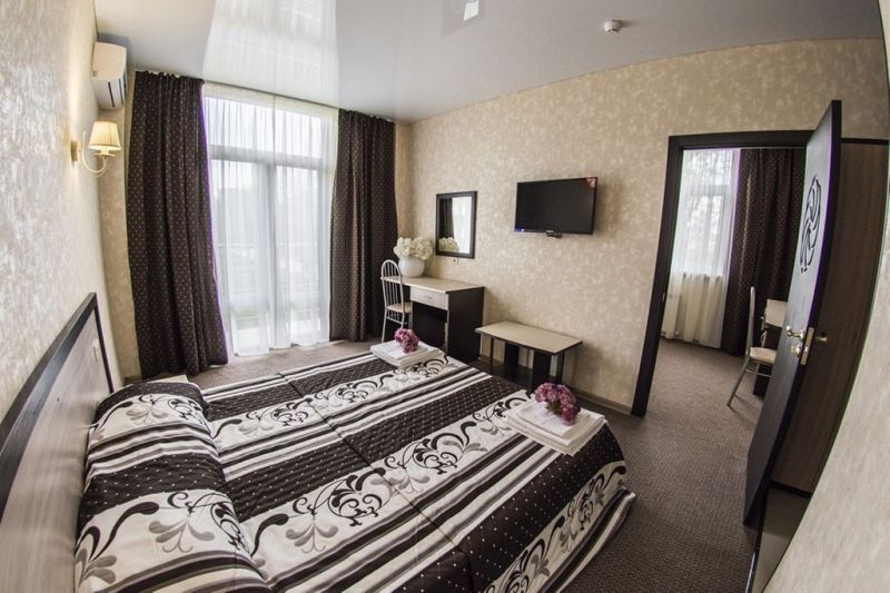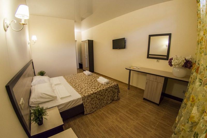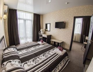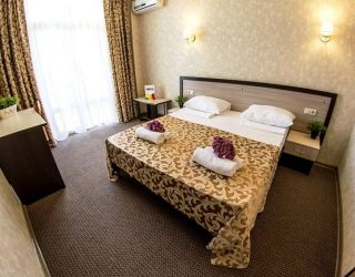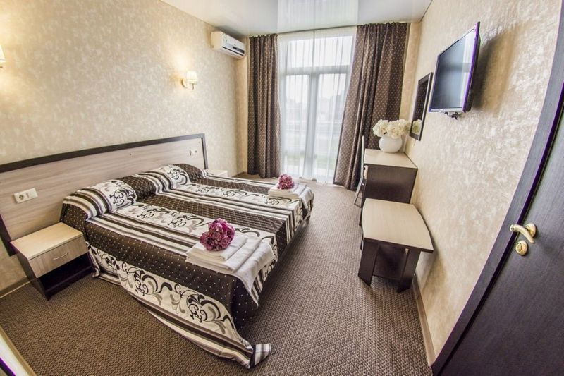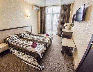 Самолетом до аэропорта г. Анапы, далее на маршрутном такси №127 до остановки «Аквапарк», далее на маршрутном такси №128 до остановки «Паралия», далее пройти пешком 410 м до отеля.