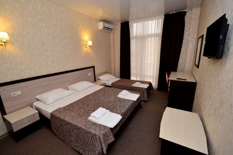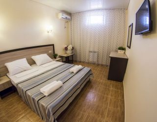 Поездом до ж/д вокзала г. Анапы, далее на маршрутном такси №120 до остановки «Паралия», далее пройти пешком 410 м до отеля.