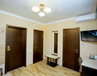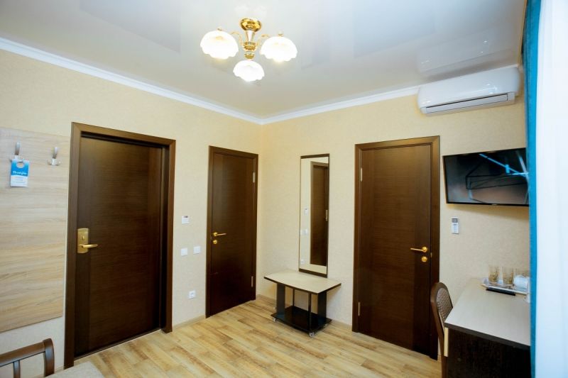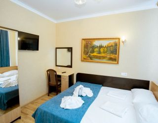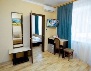 Трехэтажный корпус гостевого дома разместился на зеленой улице в тихом квартала города. В распоряжении гостей 2-х и 3-х местные номера. В каждом номере предусмотрен санузел, есть сплит-система, электрочайник, телевизор.