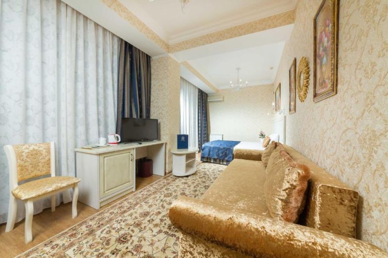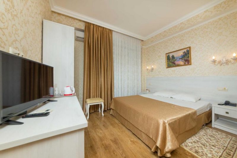 Постояльцы отеля размещаются в восемнадцати номерах различной категорий. Их индивидуальный дизайн позволяет учитывать привычки и пожелания отдыхающих. Просторные комнаты оснащены удобной мебелью, ванной, мини-баром, необходимыми техническими устройствами: телевизором, мини-холодильником, телефоном, сейфом для хранения ценных вещей, кондиционером. В люксовых – электрочайники, наборы столовой посуды. Отель предназначен для индивидуального и семейного отдыха.