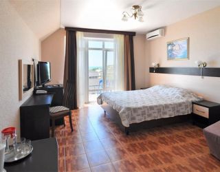 Отель имеет собственную закрытую территорию, на которой разместились корпуса с разным количеством этажей, уютные зоны отдыха, беседки и площадки. Его жилой фонд насчитывает 50 удобных номеров категорий «Комфорт» и «Стандарт» с разным количеством комнат и мест, рассчитанных на проживание более 140 человек. Все номера отеля прекрасно меблированы, имеют автономные санузлы с душем или ванной, феном и другими туалетными принадлежностями. Каждый из них укомплектован современной бытовой техникой: сплит-системой, мини-холодильником, телевизором, Wi-Fi, прочими удобствами. Террасы корпусов, оборудованные мебелью и качелями, служат дополнительными зонами отдыха.