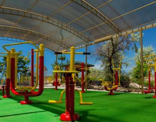 Помимо столовой, где гости могут заказать себе комплексное питание в пансионате, работает несколько баров. В распоряжении отдыхающих открытый бассейн с подогреваемой водой, спа-центр, тренажерный зал, караоке. По вечерам в пансионате устраиваются досуговые мероприятия. На территории доступен беспроводной интернет, возле корпуса организована автостоянка. Детей развлекают аниматоры, регулярно устраиваются детские дискотеки. Также для юных гостей оборудована игровая площадка, в общем бассейне есть специальное детское отделение. Малышам пансионат предоставляет стульчики для кормления, прогулочные коляски, кроватки-манежи.