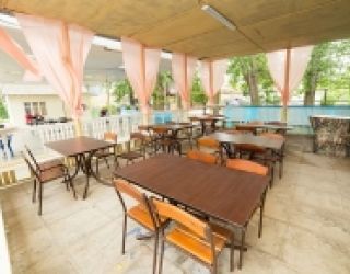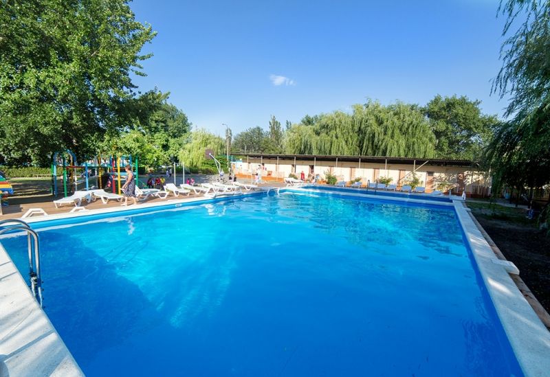 Большой плюс бассейн с детским отделением, детская и волейбольная площадки. Питание комплексное, не супер, но есть можно. Отравлений не было. Обслуживание в столовой оперативное в 2 смены, столовая просторная, чистая. с кондиционером.