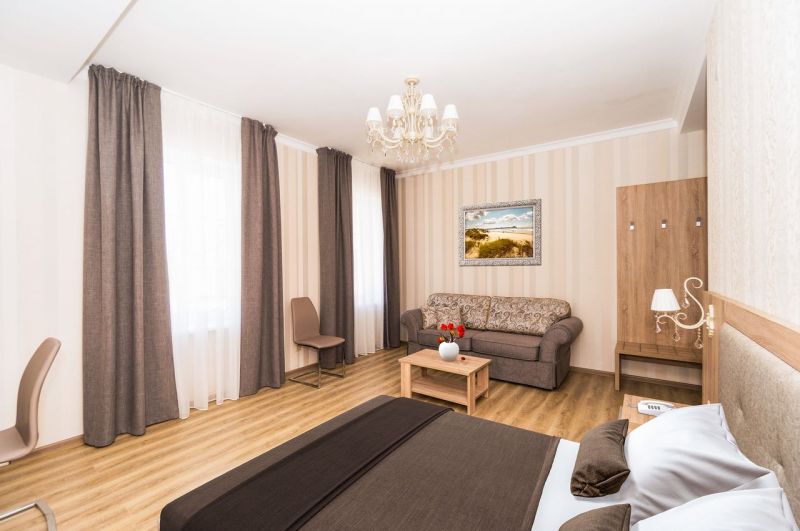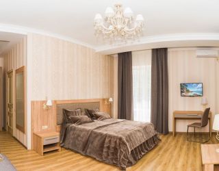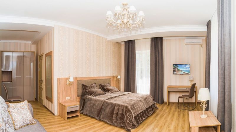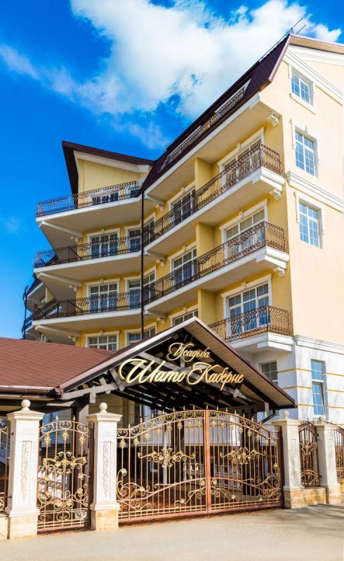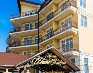 Стильная и элегантная Усадьба «Шато Каберне» это новый пансионат, который построен в 2017 г. Территория усадьбы занимает 1,3 га. На территории есть собственная охраняемая автостоянка, зеленая территория с уютными двориками и клумбами, плавательный бассейн с детской, взрослой и гидромассажной чашей, спортивными и игровыми зонами отдыха, 8 трехэтажных коттеджей и административное пятиэтажное здание, где расположены служба приема и размещения, лобби-бар и ресторан со «шведской линией». Отдыхающие размещаются в номерах повышенной категории, которые оформлены в нейтральных постельных тонах в стиле современной классики, и укомплектованы современной и профессиональной гостиничной мебелью.