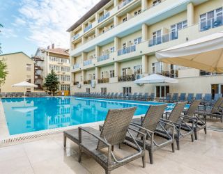 «SUNMARINN» Resort Hotel All inclusive – новый современный отель, расположенный в самом центре города-курорта Анапа, предлагает гостям круглогодичный отдых! Летом мы приглашаем вас провести незабываемый отпуск на берегу Чёрного моря в окружении живописных дюн, тёплого песчаного пляжа и ласковых солнечных лучей. К услугам наших гостей: проживание в комфортабельных номерах, питание по системе «ВСЁ ВКЛЮЧЕНО», профессиональная анимация для взрослых и детей, собственный песчаный пляж, а также самый большой плавательный бассейн в Анапе! В межсезонье отель «Санмаринн» предоставляет питание по системе «ЗАВТРАК ВКЛЮЧЁН». В отеле имеется всё необходимое для проведения конференций, семинаров, банкетов, деловых встреч и тренингов. В шаговой доступности расположены достопримечательности города, набережная, торгово-развлекательные комплексы, автовокзал, магазины и центральный рынок.