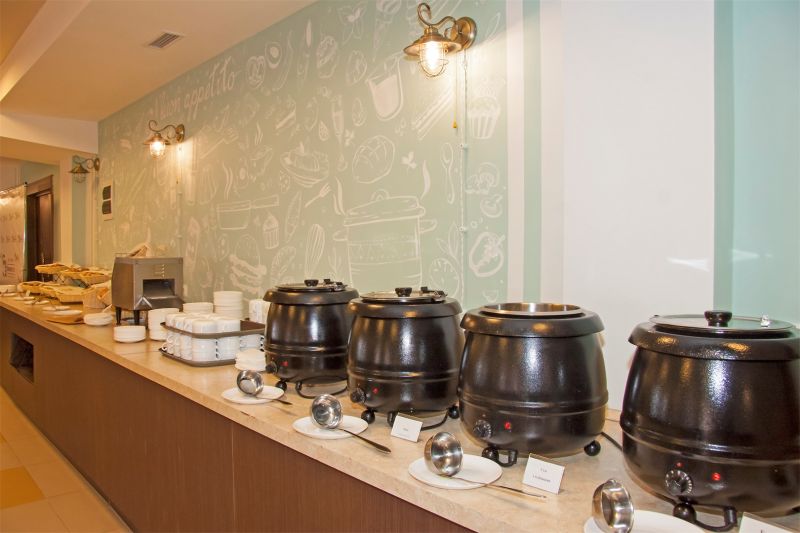 - питание «ALL INCLUSIVE» по системе шведский стол (с 28.04. по 15.10): промежуточные станции питания, разнообразие алкогольных и безалкогольных напитков в кафе и баре (администрация отеля оставляет за собой право перейти на комплексное питание при загрузке отеля менее тридцати пяти человек)
