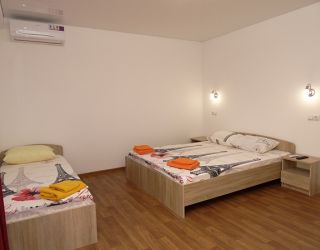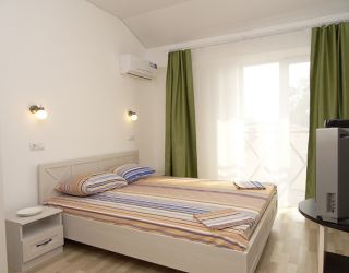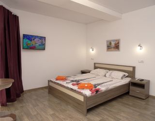 Отель располагает собственной закрытой территорией. Четырехэтажное здание, насчитывающее 22 номера, способно одновременно вместить более 50 человек. Есть уютная зона отдыха. Гостиничные номера имеют отдельные санузлы с душем и туалетными принадлежностями. Каждый номер обставлен уютной мебелью. В распоряжении гостей – сплит-система, холодильник, телевизор и WI-FI, другие удобства.
