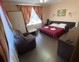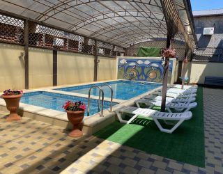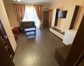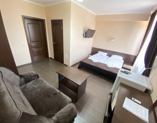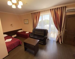 Трехэтажный корпус возвышается на небольшой закрытой территории всего в 40 метрах от моря. В распоряжении отдыхающих просторные однокомнатные и двухкомнатные номера. В каждом номере предусмотрена своя ванная комната, есть ЖК-телевизор, электрочайник и кондиционер.