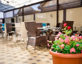 На территории работает кафе , рассчитанное на 60 человек. Также среди услуг открытый бассейн, парковка для гостей с машинами и сеть wi-fi.