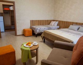 Трехэтажный кирпичный корпус гостевого дома разместился на тихой улочке в частном секторе города. Небольшой жилой фонд предлагает гостям 8 комфортабельных номеров с удобствами. Все номера оснащены сплит-системой, в комнатах есть телевизор и холодильник. Также для размещения отдыхающие могут выбрать отдельно стоящий коттедж.
