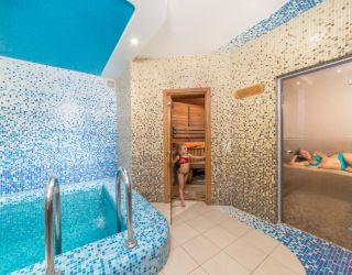 В комплексе работают два ресторана, где подают блюда европейской, итальянской и кавказской кухни. На втором этаже отеля организован небольшой открытый бассейн с подогревом. Также в распоряжении гостей сауна, хаммам. Днем в гостиничном комплексе проводятся анимационные шоу, а вечер можно скрасить за игрой в бильярд. Отдыхающим доступен беспроводной интернет, возле корпуса есть стоянка для автовладельцев. Любые деловые мероприятия можно провести в одном из оборудованных конференц-залов. Большой рассчитан на 120 приглашенных, малый — на 40 человек. Для детей работает игровая комната, где за малышами присматривает воспитатель. Родителям доступна аренда прогулочных колясок и кроваток-манежей.