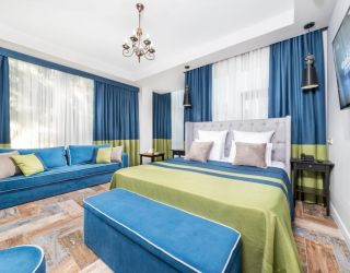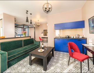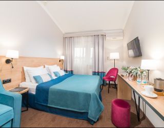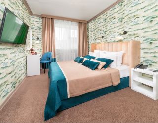 Четырехэтажный корпус отеля разместился на пересечении улиц Горького и Гребенской. Жилой фонд, способный единовременно принять более 100 человек, предлагает отдыхающим номера Студио, Стандарт, Люкс и Улучшенной категории. В комнатах стильный современный интерьер, выдержанный преимущественно в светлых оттенках с использованием ярких акцентных пятен. Каждый номер оснащен сплит-системой, кондиционером и бытовой техникой, в Студиях есть мини-кухня.