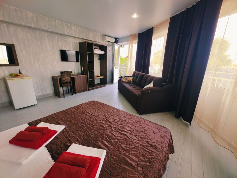 Комплекс состоит из двух современных 5-ти этажных корпусов. Жилой фонд, рассчитанный на 150 человек, предлагает однокомнатные номера Стандарт и Комфорт и двухкомнатные Люксы. Все номера оснащены сплит-системой, индивидуальным санузлом с душем, в комнатах есть телевизор, фен, мини-холодильник. В ряде номеров предусмотрены балконы с видом на море.