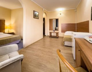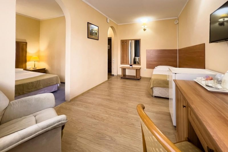 Отель прекрасно подходит для всех возрастов. Для наших маленьких гостей предоставляются детские стульчики в столовой и кроватки в номерах. Для подвижных игр доступна детская площадка на свежем воздухе и детская комната в одном из корпусов. А анимация отеля не даст заскучать как детям, так и взрослым.
