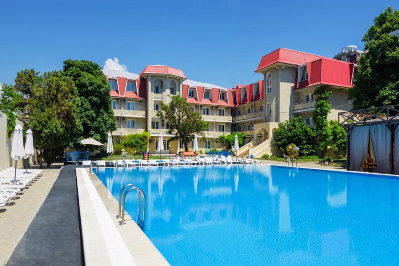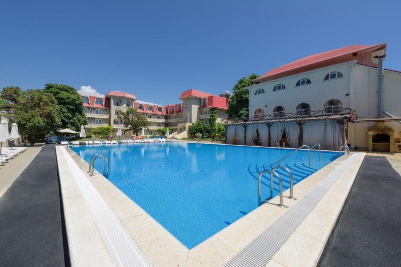 На территории отеля расположены два бассейна: взрослый и детский. Желающим погреться доступна сауна с купелью. Любители спорта могут провести время за игрой в настольный теннис или в командных играх на волейбольной площадке.