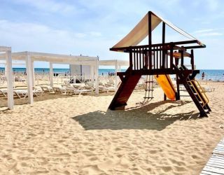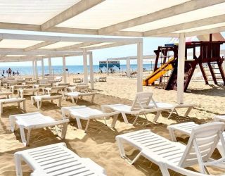 Расстояние до ближайшего пляжа – всего 100 метров. Он имеет песчаное покрытие, оборудован лежаками и навесами. На нем и близлежащем городском пляже водные развлечения для детей и взрослых.