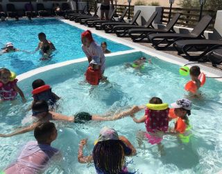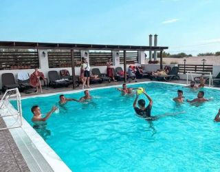 В распоряжении гостей отеля открытый пресноводный бассейн, площадью в 120 кв. м с детским отделением в 13,5 кв. м, с удобной лаундж-зоной. Функционируют детская комната и игровая площадка для юных жильцов на свежем воздухе. Имеется собственная удобная спортплощадка.