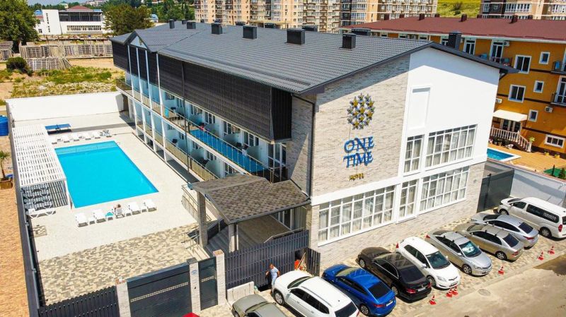 Отель построен недалеко от моря в 2021 г. Находится он на второй береговой линии Пионерского проспекта города Анапы, в экологически чистой зоне. На территории отеля летний открытый бассейн с подогревом. Независимо от категории, все номера выглядят стильно и уютно. Все апартаменты обставлены удобной мебелью и оборудованы современной бытовой техникой: холодильником, чайником, телевизор 43"" с плоским экраном и со спутниковым TV. На всей территории отеля «One Time» доступен wi-fi.